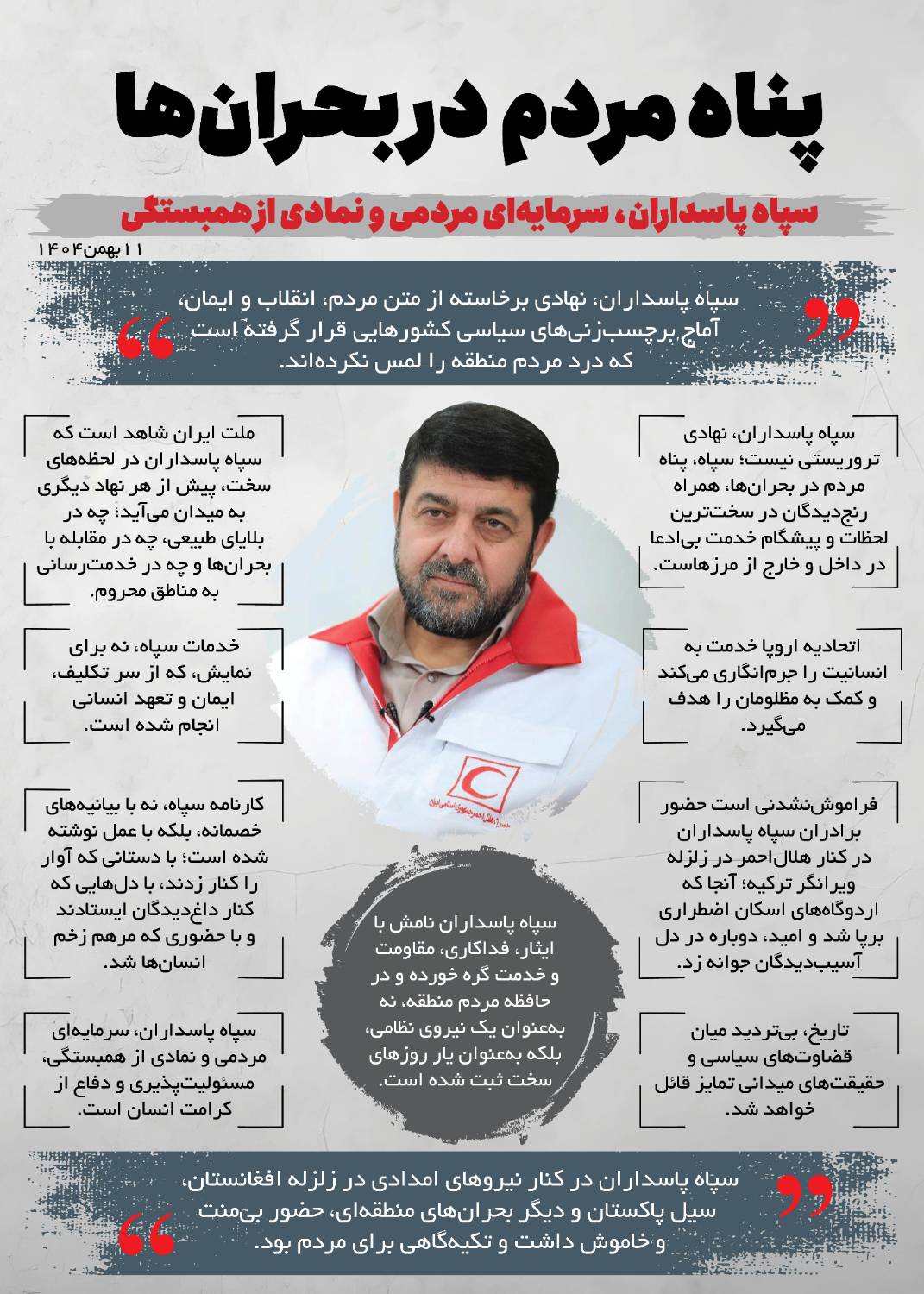 رئیس جمعیت هلالاحمر در پیامی خطاب به سیاستمداران یاوهگوی آمریکایی و اروپایی تأکید کرد: ایران سرزمین غیرت، ولایت، خون شهدا، رشادت فرماندهان و وفاداری ملتی بزرگ است، و این ملت هرگز یاوهگوییهای سیاستمداران بیمسئولیت را برنمیتابد.