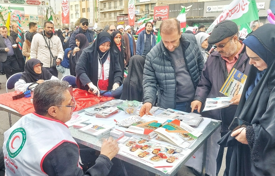 معاونت بهداشت، درمان و توانبخشی جمعیت هلالاحمر همزمان با برگزاری راهپیمایی سالگرد پیروزی انقلاب اسلامی، با برپایی غرفه معرفی خدمات توانبخشی و استقرار ایستگاه پایش سلامت، خدمات اطلاعرسانی و سلامتمحور به شرکتکنندگان ارائه کرد.