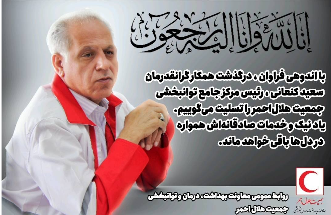 درگذشت جناب آقای سعید کنعانی که حقیقتا انسانی نمونه در اخلاق و ذخیره‌ای ارزشمند برای جمعیت هلال‌احمر بود، خسرانی بر پیکر این نهاد امدادی است.